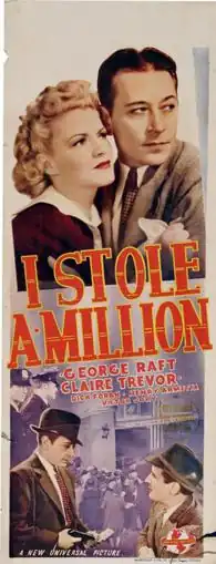 I Stole a Million is a 1939 film noir crime film starring George Raft as a cab driver turned small-time crook who makes a big score and lives to regret it. The supporting cast includes Claire Trevor, Dick Foran, and Victor Jory. The movie was written by Nathanael West based on a story idea by Lester Cole, which in turn was based on the life story of bank robber Roy Gardner. It was directed by Frank Tuttle, and released by Universal Pictures.