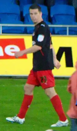 He was recalled to the team for the home match against Israel on 4 June 2005 and the away game in the Faroe Islands four days later, scoring a free kick in the 2–2 home draw for the first, and a penalty in a 2–0 away win in the latter game.[38][39] He made one appearance in Ireland's UEFA Euro 2008 qualifying campaign, his final cap, starting in a 2–1 away victory over San Marino.[40]