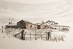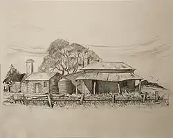 - ^ Sprague, Ian (April 1979). "Mungeribar Pottery" (PDF). The Village Bell (5): 14–15. Retrieved 19 January 2016. The house was made of "brick and timber, low stramit steel roof, cedar windows, wooden floors, slate, cork, bagged white brick interior." Personal communication from a Sprague nephew.