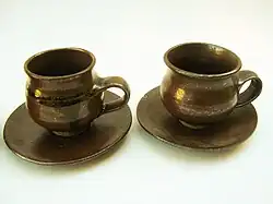 - The brown stonewares, the nicely formed functional breadcrocks, teapots, fruit platters and teacups and saucers … made his a household name among the 1970s cognoscenti.[26]