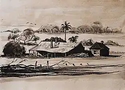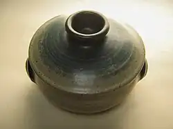 On the estate he set up a pottery,[14] designed and built a new house nearby[16] and renovated an existing five-room cottage.[17] From England he had imported a Homer kiln capable of the high temperatures needed to make stoneware and porcelain rather than earthenware, and a Boulton's cone-driven wheel and pugmill.[18][19] The equipment was on a commercial scale but devoted to studio work. The pottery was called Mungeribar: "red clay" in the local Aboriginal (Woiwurrung) language.
