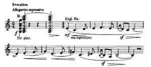 - Evocación ("Evocation", A♭ minor and A♭ major), an impressionist reminiscence of Albéniz's native country, combining elements of the southern Spanish fandango and the northern Spanish jota song forms. It includes the rarely seen key signature of seven flats.