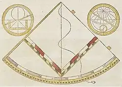 A pre-existing instrument was the cross-staff. The first working version of a cross-staff was developed for astronomical study in the 14th century and was later converted to nautical use in the early 16th century. Due its construction, the cross-staff was a cruciform piece of wood. A sailor or astronomer would put the lower edge of the traverse piece to the and the upper end to the position of the celestial object. Markings along the staff represented degrees of measurement which could eventually be used to obtain latitude. But the damaging effects looking directly at the sun for extended periods of time coupled with the varied nature of a ship's deck while under sail made it a very crude and unreliable instrument to work with.[11] The lack of reliable instruments with which to determine location hindered the efforts of sailors and explorers until the later emergence of more advanced apparatuses.