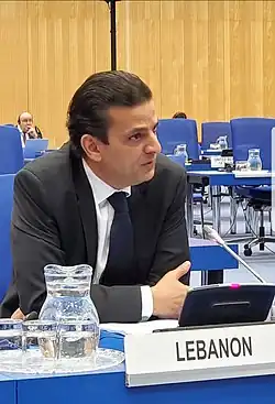 Previously he was the Chargé d'Affaires of Lebanon in the Kingdom of Bahrain[7] between 2012 and 2017. And prior to that, he worked at the Permanent Mission of Lebanon to the United Nations in New York, and he was Deputy Permanent Representative of Lebanon, and subsequently the Chargé d'Affaires of the Permanent Mission from 2004 to 2006.