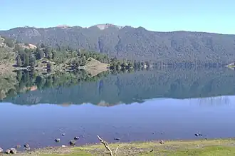 Icalma Lake is a lake of glacial origin located in the Andes of the La Araucanía Region of Chile. A hamlet on the southern shore of the lake is also called Icalma. About 3 kilometres (1.9 mi) from the hamlet is Icalma Pass, 1,307 metres (4,288 ft) in elevation and on the border with Argentina. The pass is traversed by a road, unpaved in Chile in 2017 and sometimes impassable during the Southern Hemisphere winter due to heavy snows.[2] Icalma Airport is located 9 kilometres (5.6 mi) northeast of the hamlet and some 8 kilometres (5.0 mi) from the border with Argentina.