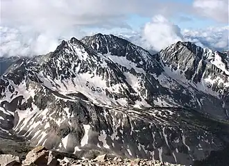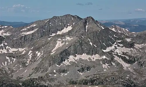 Ice Mountain is a high mountain summit of the Collegiate Peaks in the Sawatch Range of the Rocky Mountains of North America. The 13,958-foot (4,254 m) thirteener is located in the Collegiate Peaks Wilderness, 17.1 miles (27.5 km) west-northwest (bearing 290°) of the Town of Buena Vista, Colorado, United States, on the Continental Divide separating San Isabel National Forest and Chaffee County from White River National Forest and Pitkin County.[1][2][3]