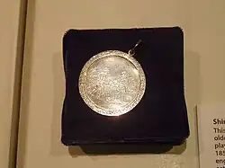 Precursor games of ice hockey are known to have been played in Ottawa. The 1850s medal pictured was presented to a shinny tournament champion. The illustration on the medal depicts two players. The sticks are field hockey sticks and the game was played with a ball. The medal is in the collection of the City of Ottawa archives.