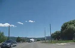 East of Eagle, SH-55 turns northward and climbs to the Spring Valley and over the Spring Valley Summit at 4,242 feet (1,293 m), then descends 1,600 vertical feet (490 m) on Horseshoe Bend Hill into Horseshoe Bend. The new multi-lane grade was completed in late 1991;[3] the old curvier road to the west was long plagued by landslides and extended closures.[4][5][6] North of Horseshoe Bend, the highway ascends the Payette River and passes through several recreational areas, which offer rafting, fishing, and camping activities. SH-55 continues north, through the small communities of Banks and Smiths Ferry, then crosses the river via the Rainbow Bridge (built in 1933), originally known as the North Fork Bridge.[7]