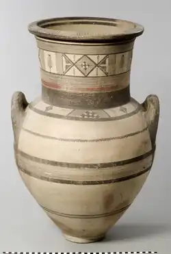 For a few months in 1928, a Swedish Cyprus Expedition effort, led by Erik Sjöqvist, worked at Idalium. Their primary work was a complete excavation of the upper portion of the West Acropolis (Ambelleri) finding a fortified sanctuary of Anat-Athena. Votive gifts consisting mainly of weapons and tools were found. Personal accessories such as pins, fibulae, earrings, bracelets, and different kinds of pottery. They also made soundings in the surrounding terrace, finding the royal palace of Idalion, and excavated a number of tombs, which ranged from the Cypro-Archaic to the Hellenistic periods in date.[14] They proposed six different building periods for the West Acropolis area. Periods 1–3 were dated to the Late Cypriote III (1200-1050 BC), when the city kingdom of Idalion seems to have been formed. Periods 4–6 were considered to belong from Cypro-Geometric III to Cypro-Archaic II (1050-850 BC).[15][16][17][18]