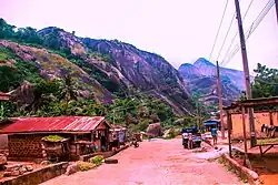 The Idanre Hill is well known for its scenic landscape.[2][3] Its wide variety of cultural sites like 'Owa's Palace', shrines, The Old Court, Belfry, Agboogun footprint, thunder water (Omi Apaara) and burial grounds have since brought the location fame and the nation's nomination for the UNESCO World Heritage Site shortlist.[4][5] It is situated 3000 ft (914.4 meters) above sea level and houses a unique ecosystem upon which the cultural landscape has Integrated.[6] It also has diverse and variegated eco-systems of flora and fauna. Oke Idanre contains very important bio-physical and land form features whose interaction with the physical features created an enduring cultural landscape within the setting.[7]