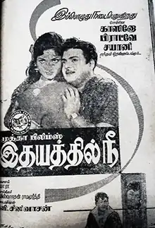 Idhayathil Nee (transl. You are in my heart) is 1963 Indian Tamil-language romance film, directed by V. Srinivasan and produced by V. Ramasamy. The film stars Gemini Ganesan and Devika. It was released on 14 June 1963.