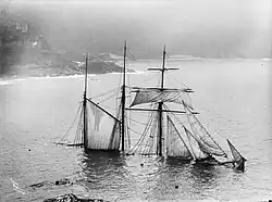 Ida May Corrigan was on deck amidships.[43] Severn Neilson grabbed her to prevent her from falling over the starboard side, then let her go and rushed forward to cut loose any remaining halyards.[38]