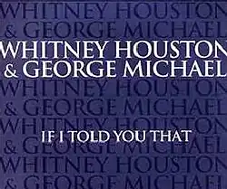 "If I Told You That" is a song by American singer Whitney Houston. It is the fifth track from her fourth studio album, My Love Is Your Love, which was released in November 1998 by Arista Records. A reworked duet version of the song with British singer George Michael was released on May 29, 2000, as the third single from Houston's first greatest hits album, Whitney: The Greatest Hits (2000). The remix was originally to feature Michael Jackson.[1] Commercially, "If I Told You That" peaked at number 1 in Iceland, Croatia and Poland, while peaking at nine on the UK Singles Chart.