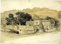 The house remained in the Selby family for nearly 300 years.[4] Sir William was succeeded by his nephew, also Sir William, who is notable for handing over the keys of Berwick-upon-Tweed to James I on his way south to succeed to the throne.[5] He married Dorothy Bonham of West Malling but had no children. The Selbys continued until the mid-19th century when the line faltered with Elizabeth Selby, the widow of a Thomas who disinherited his only son.[6] During her reclusive tenure, Joseph Nash drew the house for his multi-volume illustrated history Mansions of England in the Olden Time, published in the 1840s.[7] A brownwash watercolour painting dated c.1828 by Samuel Palmer shows that part of the building had been converted to an oast house.[8]