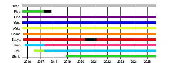 | Members | Tachibana Karen Hazuki Yuna Ritsuki Hikaru Kitami Rine Yasumori Waka Sakura Hinano Fujitani Miu Date Kaaya Shinju Kichise |