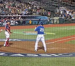 Davis played in spring training with the Mets in 2010, and led the team with a .480 average as he hit 3 homers.[96] He also sparkled on defense, prompting José Reyes to observe: "People talk about his hitting, but he is one of the best defensive first basemen you will ever see for a player his age."[77] Many Mets players were rooting for Davis to break camp with the team, but he was sent down to the minors at the end of spring training.[97][98][99] On April 19, however, the Mets purchased Davis's minor league contract.[100][101] At that point Davis had played only 65 games in his life above the Single-A level.[92]