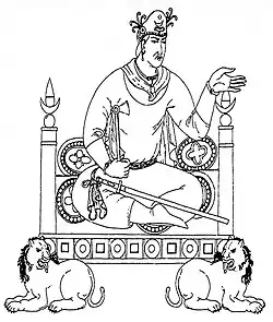 The Ikhshids became nominal vassals of the Chinese Tang dynasty. The Chinese asserted their political power in Central Asia at the expense of the Western Turks, through the establishment of the Anxi Protectorate and the formal appointment of local rulers to Governor positions in the provinces established by the Chinese.[16] As soon as 650-655 CE, Varkhuman was recognized by the Chinese as "King of Kangju" (Sogdia), and Governor, as reported by Chinese chronicles:[10][17]