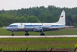 The Ilyushin Il-18 (Russian: Илью́шин Ил-18; NATO reporting name: Coot) is a large turboprop airliner that first flew in 1957 and became one of the best known Soviet aircraft of its era. The Il-18 was one of the world's principal airliners for several decades and was widely exported. Due to the aircraft's durability, many examples achieved over 45,000 flight hours and the type remains operational in both military and (to a lesser extent) civilian capacities. The Il-18's successor was the longer-range Ilyushin Il-62.