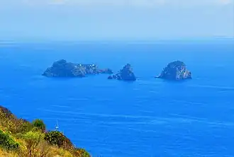 ![]() Li Galli seen from Torca, the Gallo Lungo is the one furthest to the left | |