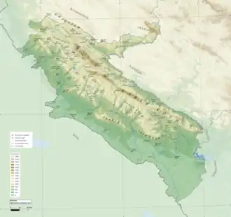 The most prominent mountain in Ilam province is Kabir Kouh, which is located in the eastern part of the province, stretching 160 km from near Pol-e Zal in the southeast to Mishkhas village near Ilam city in the northwest. The highest point in the province, Kan Seifi peak with 2,775 m (9,104 ft) above sea level, is part of Kabir Kouh range.[25][26][27]