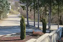 Ilirska Bistrica is the site of two known mass graves from the Second World War. The Stražica Mass Grave (Slovene: Grobišče pod Stražico), also known as the Black Fields Mass Grave (Grobišče Črne njive), is located north of the town, about 170 meters (560 ft) north of the summit of Stražica Hill. It contained the remains of German soldiers from the 97th Corps that fell at the beginning of May 1945. The grave has been exhumed.[6] The Cemetery Mass Grave (Grobišče pod pokopališčem) is located next to the town cemetery. It contains the remains of 82 German soldiers buried in a former firing trench. An asphalt road and parking lot were laid over the grave when the cemetery was expanded.[7] On August 1, 2023, a rare tornado touched down in Ilirska Bistrica, Slovenia, damaging houses and felling trees.