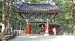 The Iljumun symbolizes the one true path of enlightenment which supports the world.[3] Physically, the gate serves to demarcate the temple from the outside.[4] It is the boundary between the Buddhist temple and a human's worldly life.[3] The gate symbolizes purification and one must leave all of their worldly desires before entering the temple.[3]