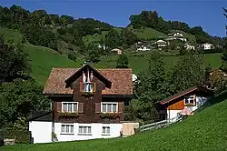 It consists of the village sections of Illgau, Vorder Oberberg and Hinter Oberberg as well as scattered farm houses. All of the farm houses, up to about the 1,300 m (4,300 ft) level are occupied throughout the year.
