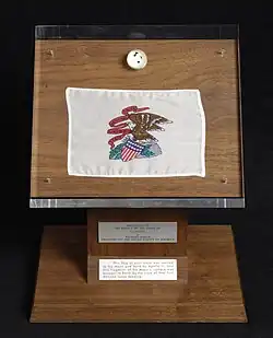 At the request of Nixon, NASA had about 250 presentation plaques made following Apollo 11 in 1969. Each included about four rice-sized particles of Moon dust from the mission totaling about 50 mg.[1][2] The Apollo 11 lunar sample display has an acrylic plastic button containing the Moon dust mounted with the recipient's country or state flag that had been to the Moon and back. All 135 countries received the display, as did the 50 states of the United States and the U.S. provinces and the United Nations.[1]