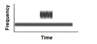The illusion is likely to be a novel form of informational masking (broadly defined as a degradation of auditory detection or discrimination of a signal embedded in a context of other similar sounds).[3] Illusory discontinuity cannot be explained by simultaneous masking, because it appears even if the noise is as far as one octave away.