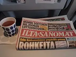 Ilta-Sanomat (Finnish for 'the evening news') is one of Finland's two prominent tabloid-size evening newspapers and the largest paper in the country. Its counterpart and biggest rival is Iltalehti.