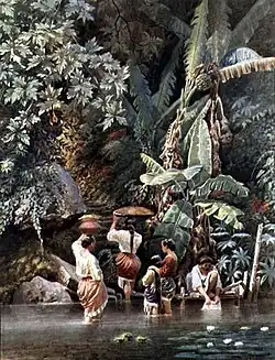 ![]() Filipino Women Washing Beneath a Banana Tree, by C. W. Andrews, main illustrator of Ilustración Filipina' | |