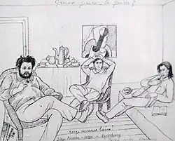 In Paris, he started to work in the Bolshevik organisation, meeting Vladimir Lenin and other prominent exiles. But soon he left these circles and the party. Ehrenburg became attached to the bohemian life in the Paris quarter of Montparnasse. He began to write poems, regularly visited the cafés of Montparnasse and got acquainted with a lot of artists, especially Pablo Picasso, Diego Rivera, Jules Pascin, and Amedeo Modigliani. Foreign writers whose works Ehrenburg translated included those of Francis Jammes.