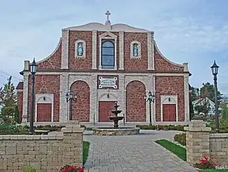 In the late 19th century a flood of Italian immigrants arrived in Iron Mountain to work in the nearby iron mines.[2] These Italian Catholics first worshipped at St. Joseph's in downtown Iron Mountain.[3] However, in 1890, those living on the north side of the city organized an "Italian Church," and received permission to start their own parish.[3] That year, they constructed a frame structure near the site of the present church and a priest was assigned to the parish.[2][3] The original frame church burned down in 1893, but work quickly began on a replacement.[3]