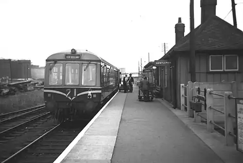 The station escaped closure when passenger services were withdrawn from the branch on 17 June 1963 because a service which had been provided since at least 1954[16] via Ulceby was upgraded from unadvertised workmen's trains[14] to publicly timetabled passenger trains. These ran from Cleethorpes, calling at New Clee, Grimsby Docks and Grimsby Town then non-stop via Habrough, at times coinciding with dock workers' shift changes.[17] This service was withdrawn on 6 October 1969 when the station finally closed.