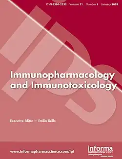 Immunopharmacology and Immunotoxicology is a bimonthly peer-reviewed medical journal that covers preclinical and clinical studies on the regulatory effects of various agents on immunocompetent cells, as well as the immunotoxicity exerted by xenobiotics and drugs. Hence, the journal encompasses a broad range of pathologies (e.g. acute and chronic infections, allergy, autoimmunity, cancer, degenerative disorders, inflammation, and primary and secondary immunodeficiencies). It is published by Informa.