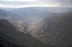The Imnaha River is a 73.3-mile-long (118.0 km)[5] tributary of the Snake River in the U.S. state of Oregon. Flowing generally east near the headwaters and then north through Wallowa County, the entire river is designated Wild and Scenic.[8] It follows a geologic fault to the Snake River, and in addition to land in the Wallowa–Whitman National Forest and private land, its corridor includes parts of three special management areas: the Eagle Cap Wilderness, Hells Canyon National Recreation Area, and Hells Canyon Scenic Byway.[8] The Imnaha flows by the unincorporated community of Imnaha, the only settlement along its course, and enters the Snake River roughly 4 miles (6 km) from the larger river's confluence with the Salmon River of Idaho and 192 miles (309 km) from its confluence with the Columbia River.[9]