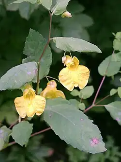 Impatiens noli-tangere (touch-me-not balsam; Latin impatiēns 'impatient' or 'not allowing', and nōlī tangere 'do not touch': literally 'be unwilling to touch') is an annual herbaceous plant in the family Balsaminaceae found in damp places in Europe, Asia and North America. The yellow flowers are followed by pods which forcefully explode when ripe, ejecting the seeds for some distance.