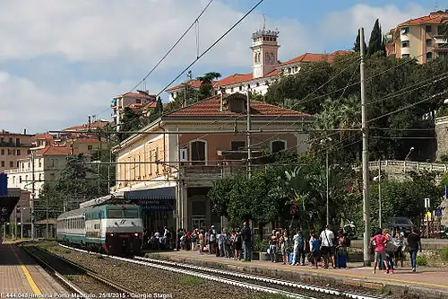 Imperia Porto Maurizio railway station (Italian: Stazione di Imperia Porto Maurizio) was one of two stations serving the city and comune of Imperia, in Liguria, northwestern Italy. Opened in 1872, it formed part of the Genoa–Ventimiglia railway, and was situated just over two thirds along the way from Genoa towards Ventimiglia. It was replaced on 11 December 2016, along with Imperia's other former railway station, Imperia Oneglia, 2.2 kilometres (1.4 mi) to the east, by a new inland station, simply named Imperia, situated on a new double-track line replacing the old coastal route.[1]