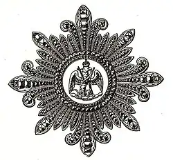 The insignia of the order was composed of an eagle atop a nopal devouring a serpent, which made reference to the Mexican national arms, and crowned with the Imperial Crown of Mexico.[5][6]