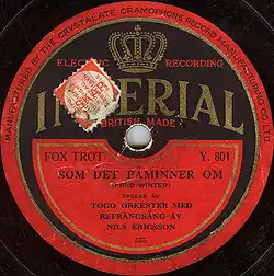 Most Imperial recordings were of popular songs, music hall tunes, and dance music of the time. Their biggest star was bandleader Jack Payne.[1] The label went out of business in February 1934.