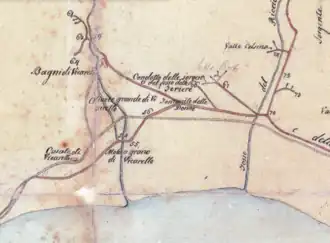 The Imperial Villa of Vicarello was an ancient Roman villa-estate that belonged to the emperors starting from Domitian (r.81-96). It is situated near the north shore of Lake Bracciano and near the village of Vicarello, near the modern town of Trevignano Romano. The current private Vicarello estate is a park of about 2000 hectares in which the Roman remains of the villa and associated monumental baths were discovered in the 19th century, some of which are still preserved.[1] The two main ancient centres are: