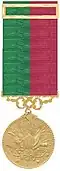 The Imtiyaz Medal / Imtiaz Medal (Turkish: İmtiyaz Madalyası) was an Ottoman military decoration, instituted in 1882. It was presented in two classes, gold and silver. The gold medal was the highest Ottoman military decoration for gallantry. When awarded during World War I, the medal was worn with a clasp in the same type of metal as the medal. The clasp depicted crossed sabers, with the date 1333 (1915).[1]