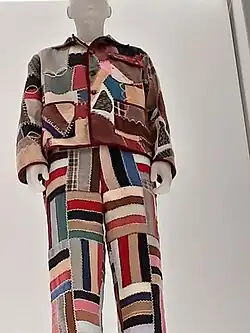 In America: A Lexicon of Fashion was a 2021–2022 high fashion art exhibition of the Anna Wintour Costume Center , a wing of the Metropolitan Museum of Art (MMA), which houses the collection of the Costume Institute . Approximately 100 men’s and women’s ensembles by a diverse range of designers from the 1940s to the present are featured. Along with ensembles, various dresses, sweaters, jackets, jumpsuits, bodysuits, coats, smocks, capes, quilts, and a flag were showcased as part of the exhibit.[1] Enclosed in scrimmed cases that represent three-dimensional "patches" of a quilt, they are organized into 12 sections that explore defining emotional qualities: Nostalgia, Belonging, Delight, Joy, Wonder, Affinity, Confidence, Strength, Desire, Assurance, Comfort, and Consciousness.[ 1]