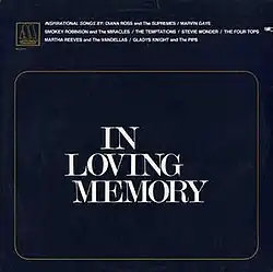 In Loving Memory is a gospel compilation released by Motown Records in September 1968. It is dedicated to the memory of Motown founder Berry Gordy's sister, Mrs. Loucye S. Gordy Wakefield, and features several popular Motown acts, including Diana Ross & the Supremes, The Temptations, The Miracles and Marvin Gaye, performing versions of popular gospel songs and spirituals.[1]