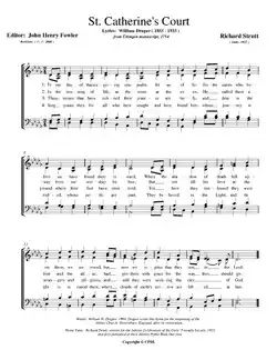 Today, the hymn is commonly sung to the tune St Catherine's Court. This tune was composed in 1925 by Richard Strutt for the golden jubilee in of the Girls' Friendly Society and published in their Jubilee Hymn Book. It was named the tune after Strutt's country house, St Catherine's Court. The hymn was published with this tune in the 1950 edition Hymns Ancient and Modern.[3]