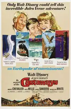 In Search of the Castaways (also known as The Castaways) is a 1962 American adventure film starring Maurice Chevalier and Hayley Mills in a tale about a worldwide search for a shipwrecked sea captain. The film was produced by Walt Disney Productions and directed by Robert Stevenson from a screenplay by Lowell S. Hawley, based upon Jules Verne's 1868 adventure novel Captain Grant's Children.[2][3]
