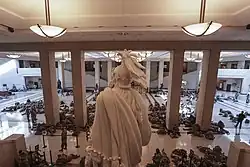 Across the National Mall to 13th Street, a public art display composed of 191,500 U.S. flags and 56 pillars of light (representing the 50 U.S. states, D.C., and the five permanently inhabited U.S. territories), were installed, representing those who could not attend the inauguration in person due to the attendance restrictions to prevent the spread of COVID-19.[84][85] The field was lit the evening of January 18.[86]
