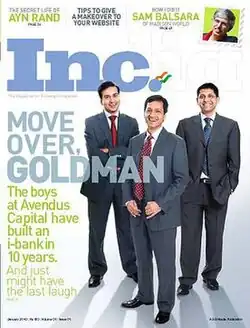 Inc. India is a monthly business magazine published by 9.9 Media. The magazine in an Indian version of the popular US magazine Inc. that focuses on entrepreneurship and growth. The magazine claims to serve as a resource base for rapidly growing, Indian small- and mid-size enterprises. The electronic version of Inc. India was launched in February 2009 and the print version was expected to launch in October of the same year.[1]