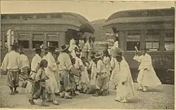 In 1896, Gojong of Korea gave the construction rights for a train line from Seoul to Jemulpo to American financier James R. Morse[4] under the condition that it would be returned to the government in 15 years.[5][6][2]: 118 In return, the Korean government provided government land and purchased privately owned land for Morse's company.[7]: 288 This was done in an attempt to keep the station from being appropriated by the Empire of Japan.[5][6][2]: 118 When construction for the railway began in 1897,[7]: 288 the station was originally planned to be built in the Takpo (탁포) area, but complaints from local residents led the Korean government to instead reclaim tidal land by the Incheon port for the station.[7]: 288 In 1899, the company ran out of funds and the rights to the station were sold to the Japanese Gyeongin Railway before construction was finished.[3][6][4]
