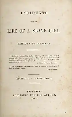 - ^ Incidents in the Life of a Slave Girl. Written by Herself, p. 222, retrieved September 19, 2019